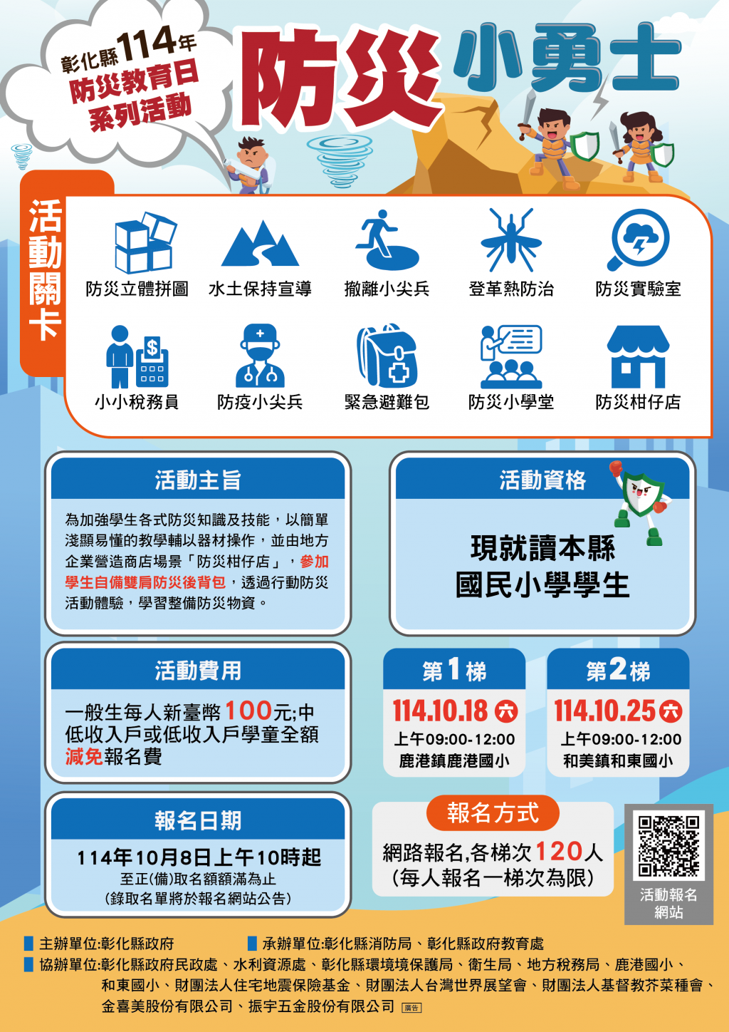 (三) | 報名資訊請至「彰化縣防災資訊網-防災資訊-防災教育日系列活動專區(網址:https://changhuadp.com/)」查詢。 |